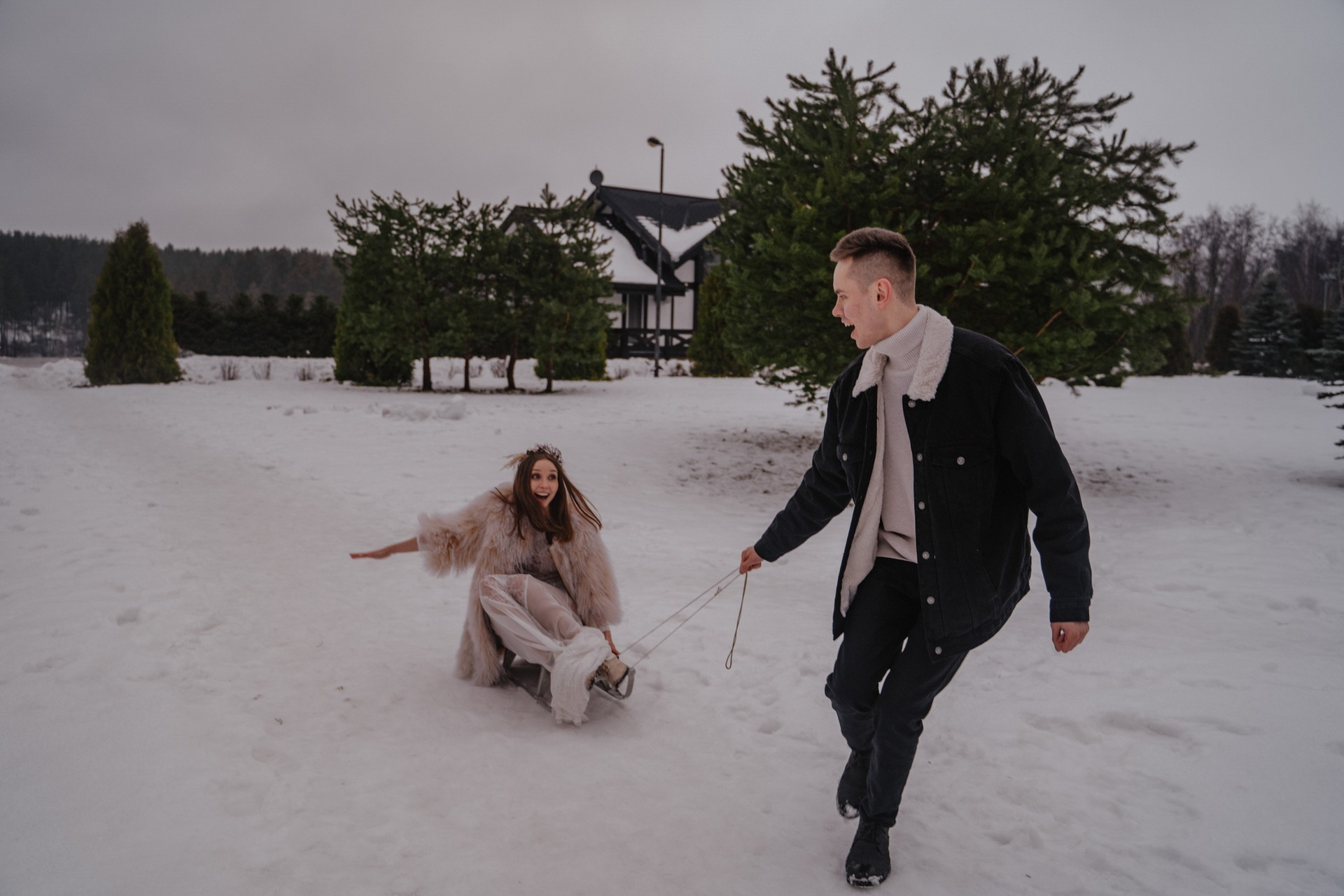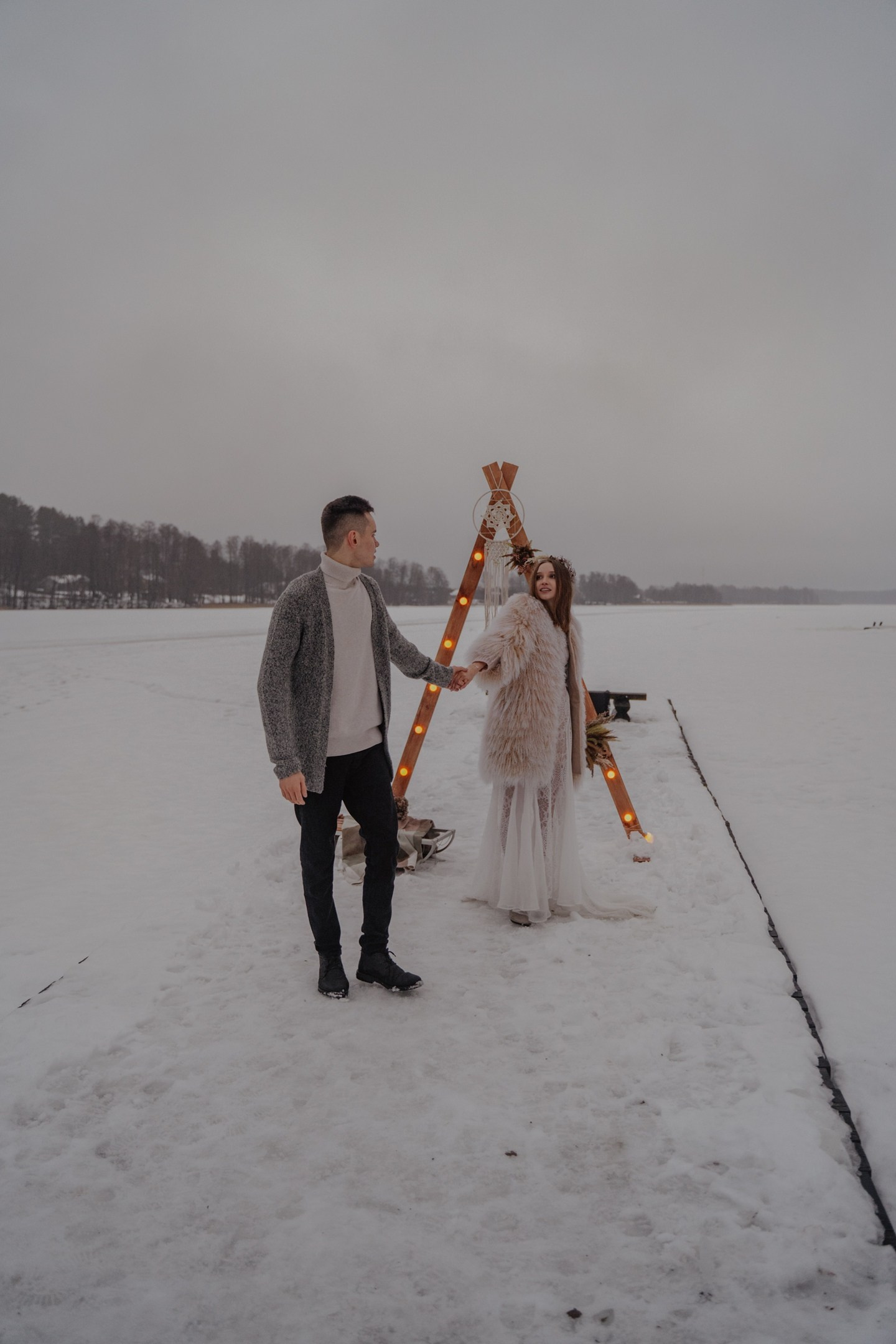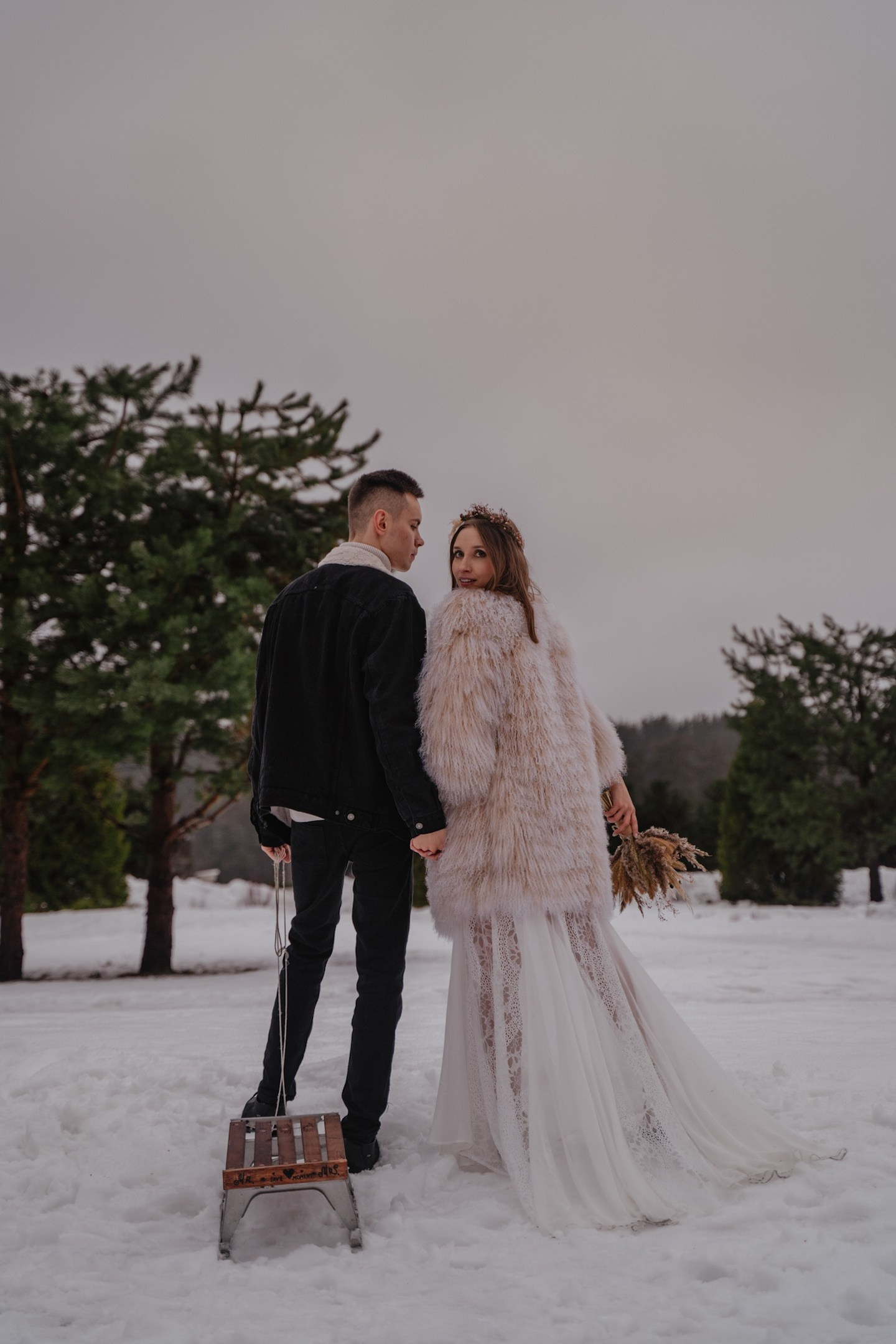 Зимняя свадебная фотосессия прогулка