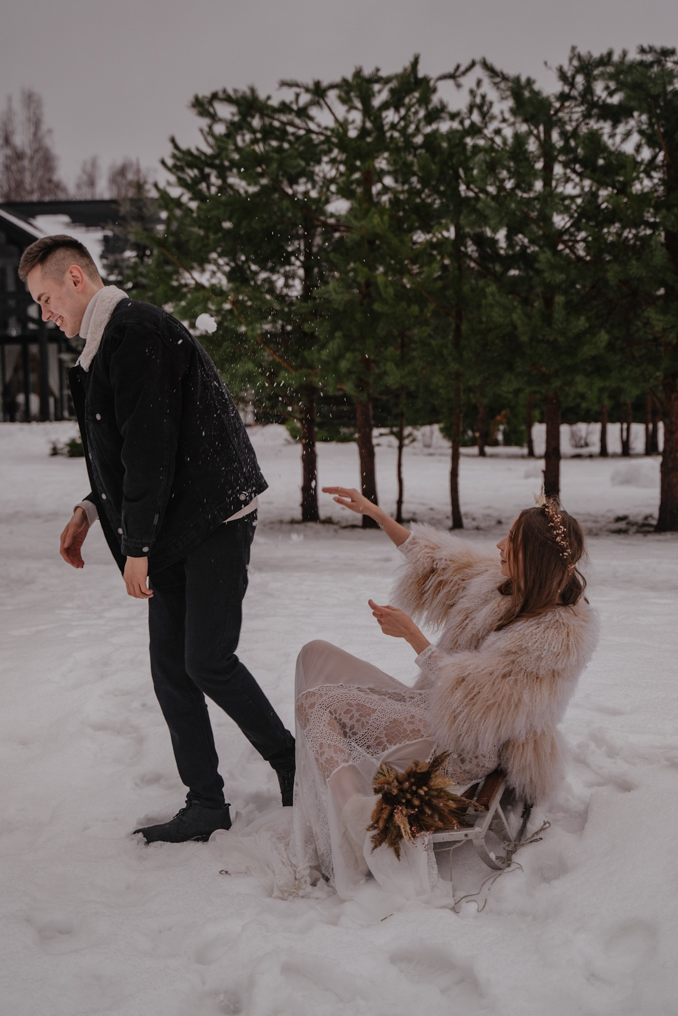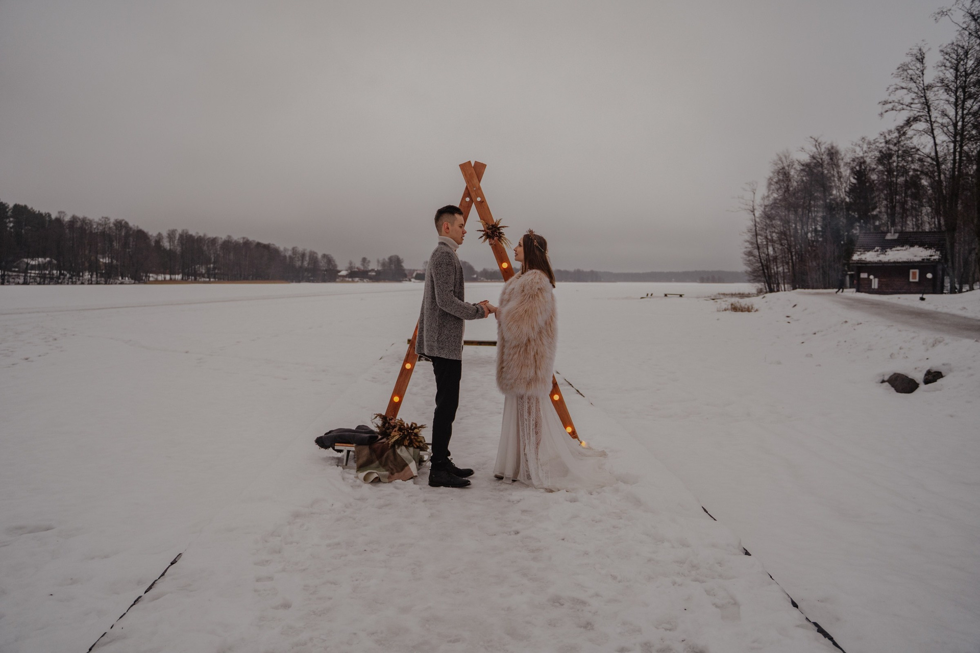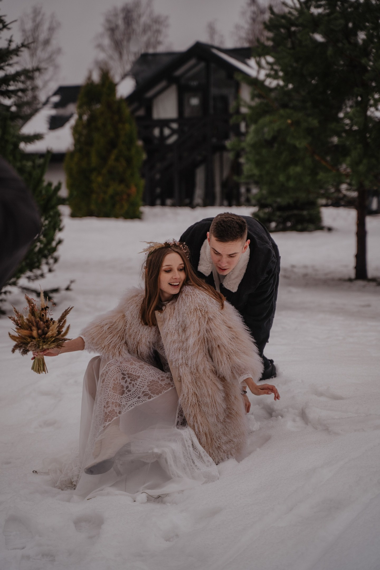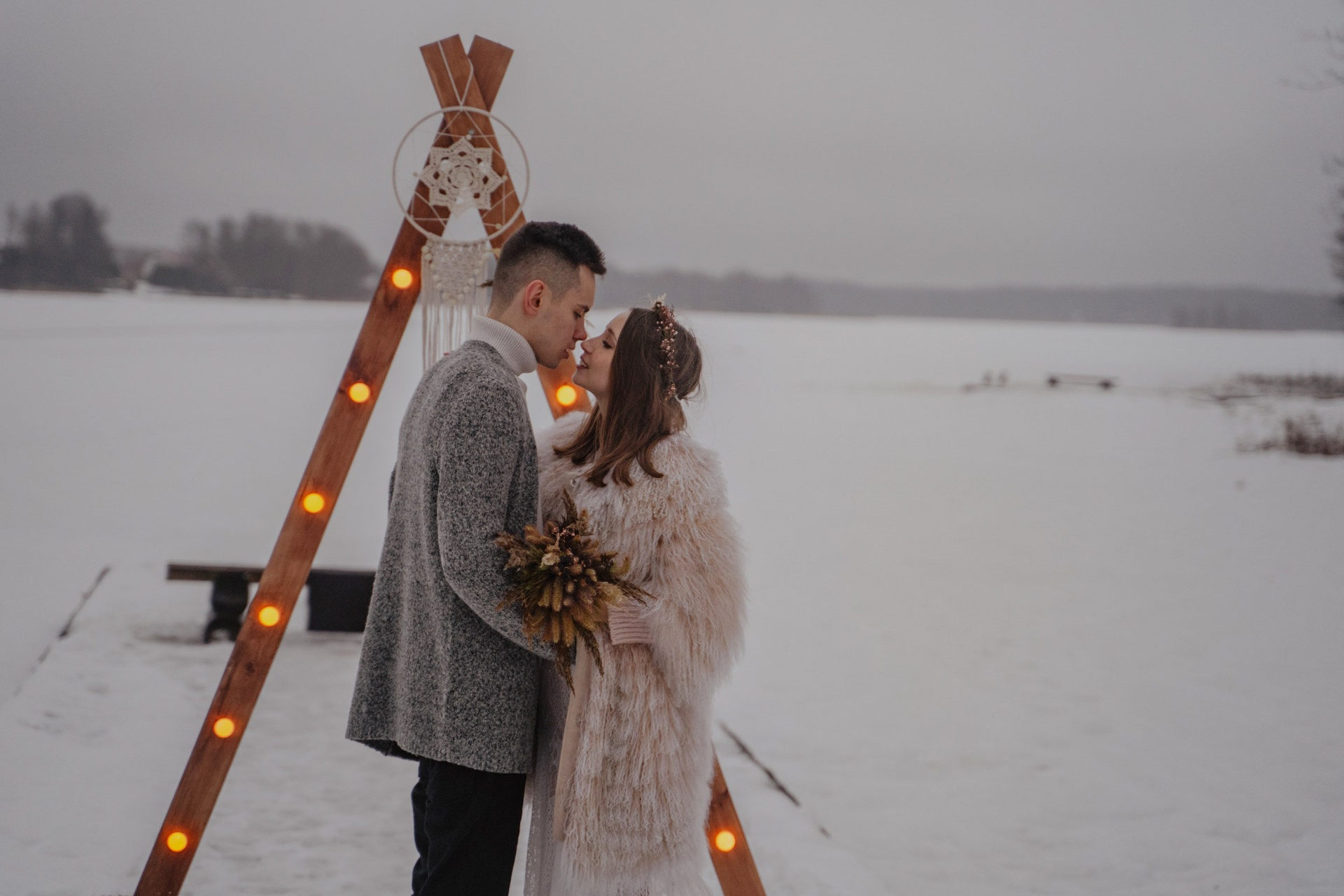 Зимняя свадебная фотосессия прогулка